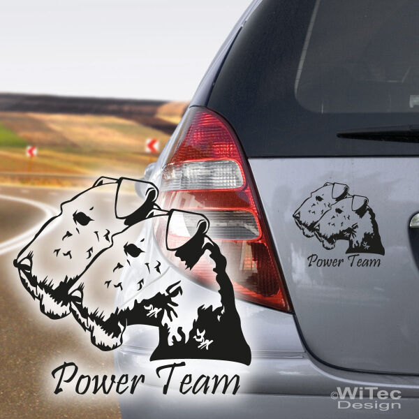 Zwei Airedale Terrier Wunschtext Aufkleber Autoaufkleber